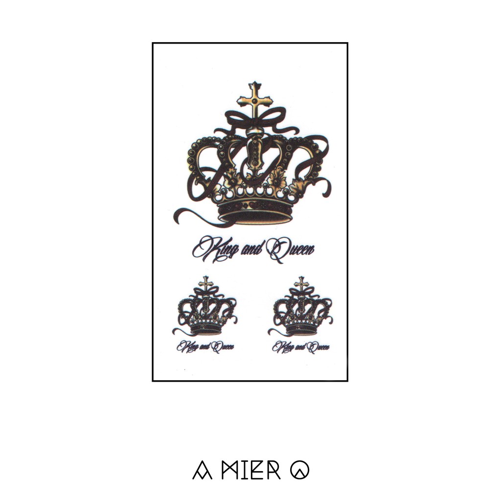 Amazon Com Sanerlian Waterproof Temporary Fake Tattoo Stickers Classic King Queen Crown Design Set Of 2 Beauty